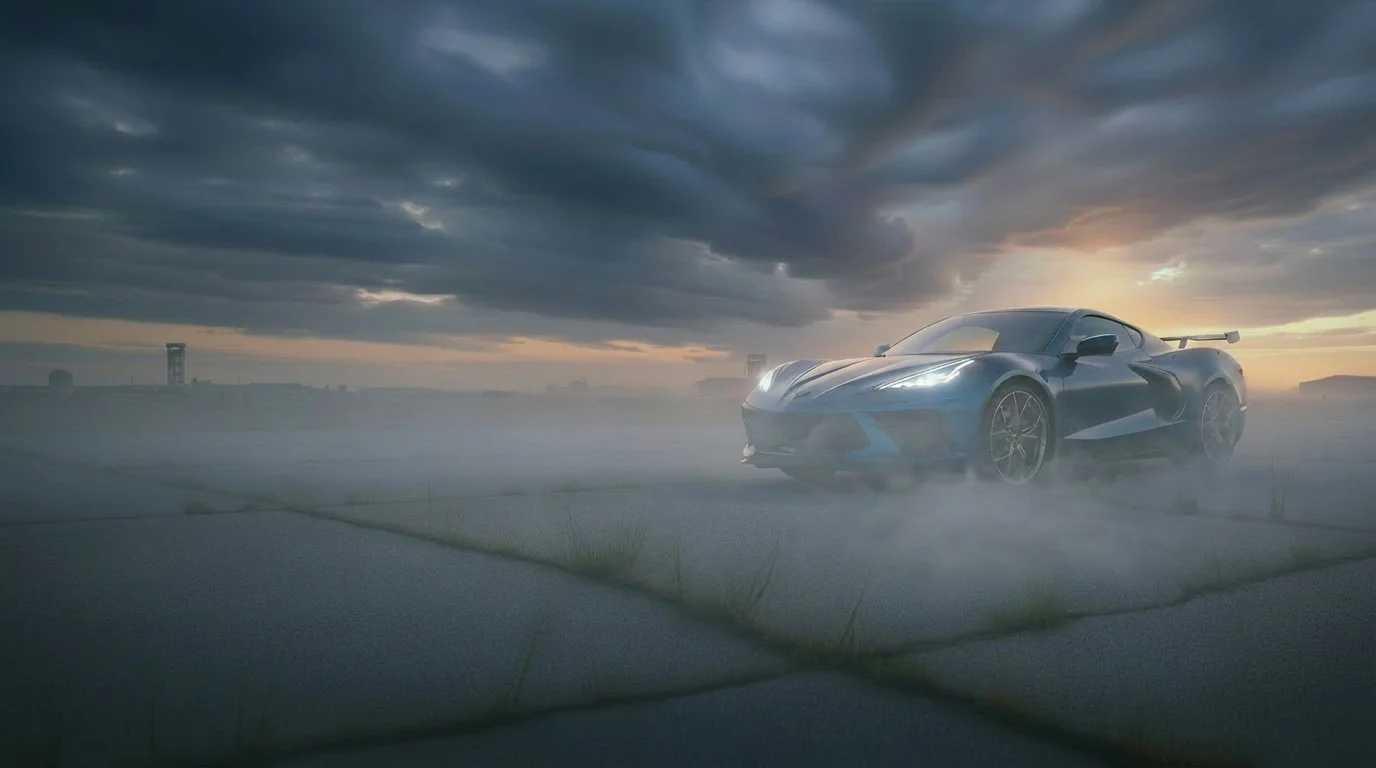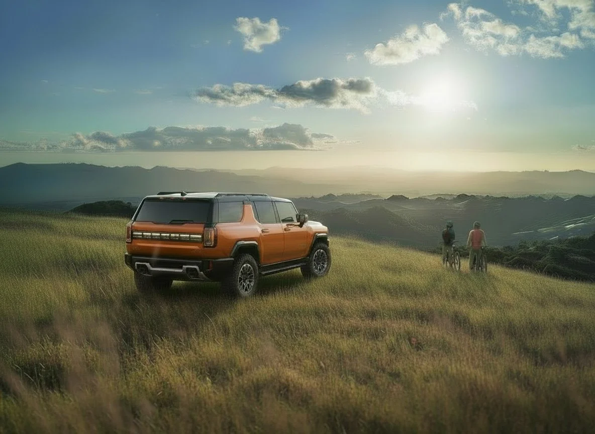 AI vehicle paired with photographic backplate with AI enhancements